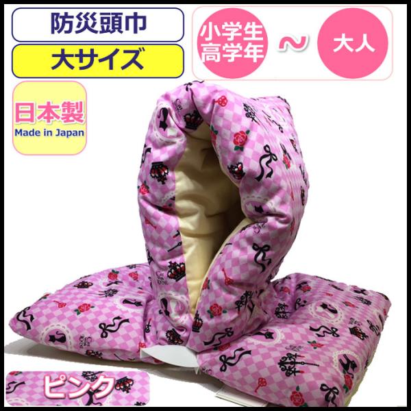Amazon 防災頭巾防災グッズ 新しい綿を使用したこだわりの国産綿100 防災ずきん 保育園から低学年男の子用可愛い ピンクねこ柄日本製表生地裏生地中わた綿100 防災頭巾 通販